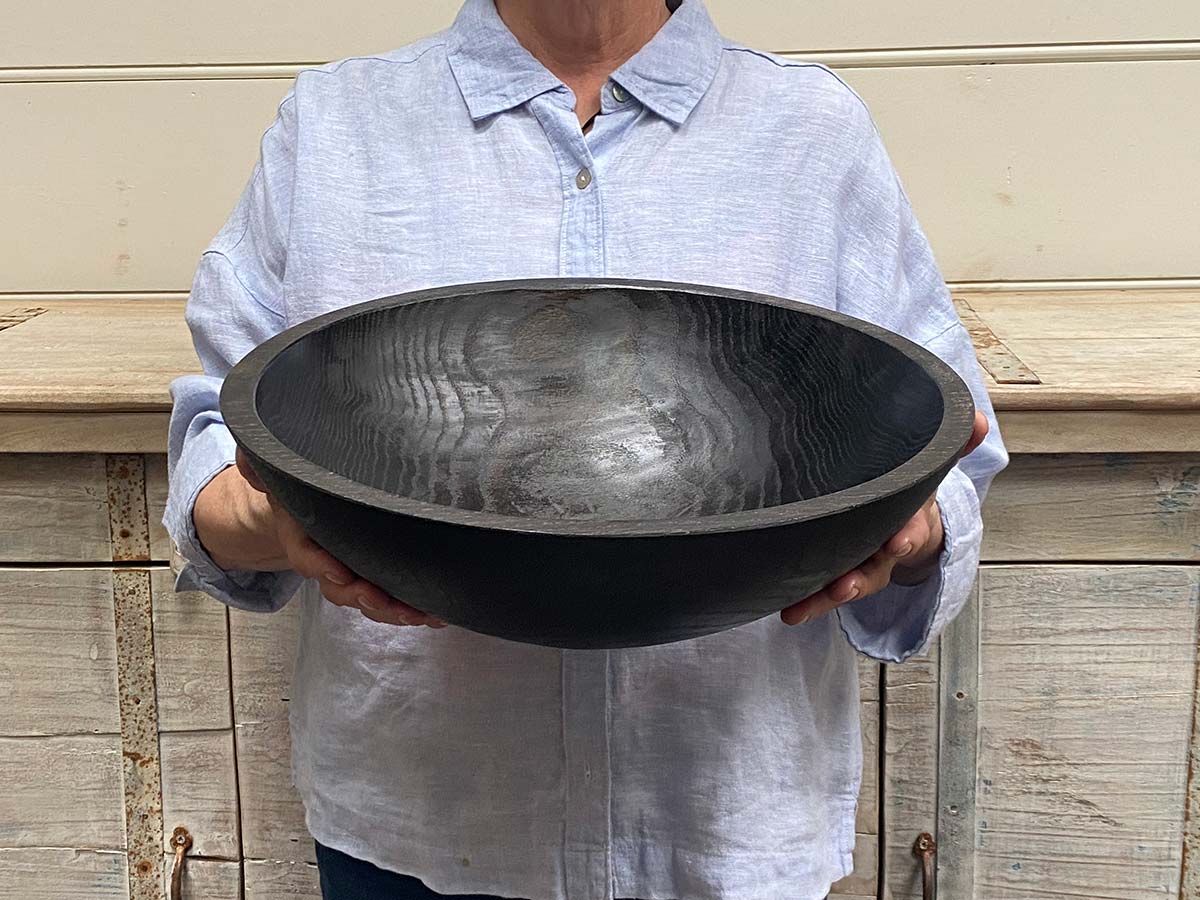 A 15-inch serving bowl with depth and character. Handmade from dark, elegant black walnut.