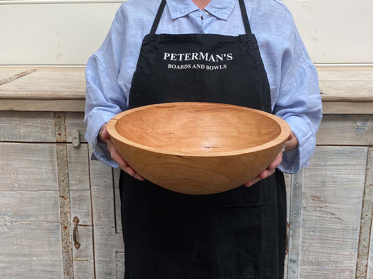 This medium cherry wooden bowl sits in that “just right” category. Not so big you need both hands to carry it, not so small it gets buried in a cabinet. Thirteen inches fits a side salad for four or a quick toss of pasta before it hits the table.