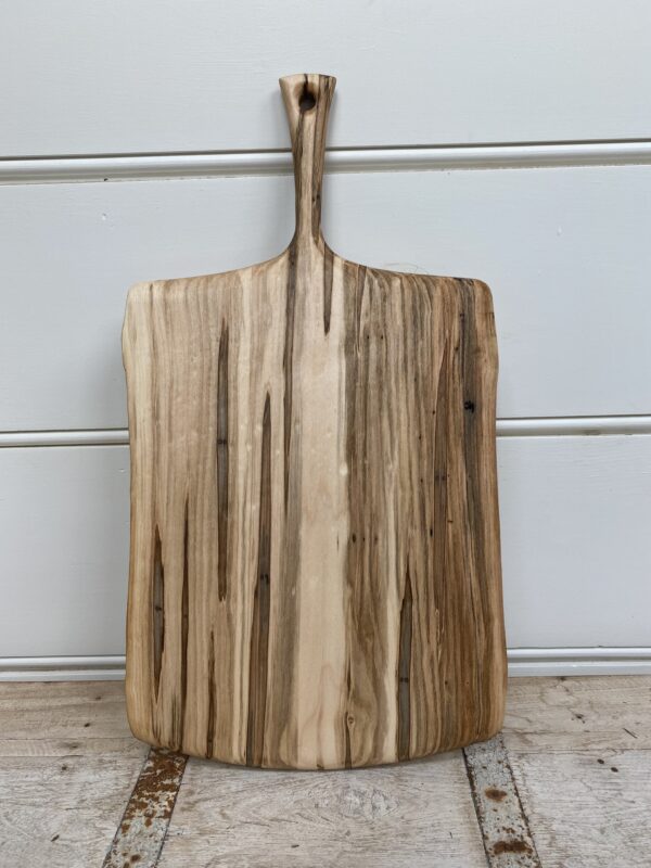 Medium, Live Edge, Ambrosia Maple Wooden Cutting Board with Handle (18”)