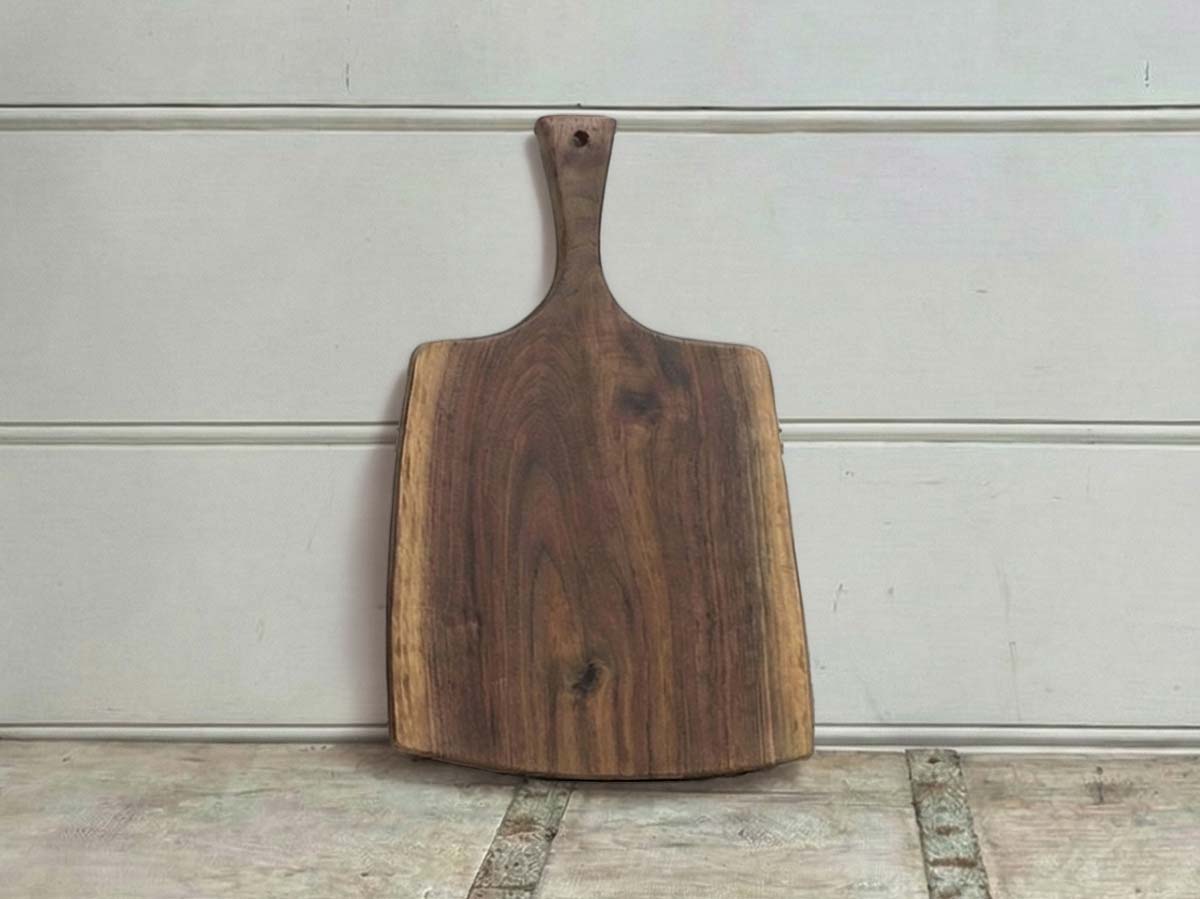 Medium, Live Edge, Black Walnut Wooden Cutting Board with Handle (18”)