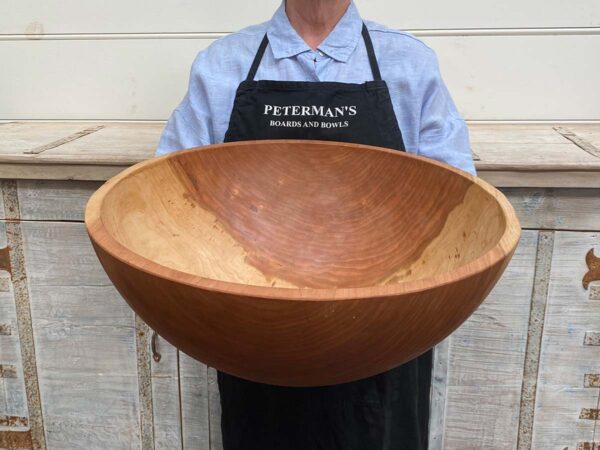 This jumbo cherry wooden bowl measures a full 21 inches, and it doesn’t mind taking up space. Big enough for the main course salad at a reunion, or to anchor the buffet with something fresh and green.