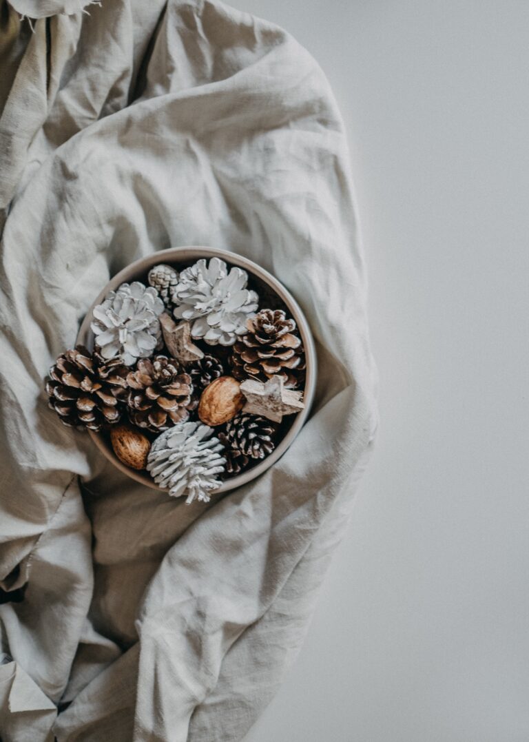 Place a few bowls on a coffee table or sideboard and fill them with items like dried pinecones, cinnamon sticks, or potpourri. The natural wood tones combined with the earthy scents will instantly make your space feel warm and comforting.